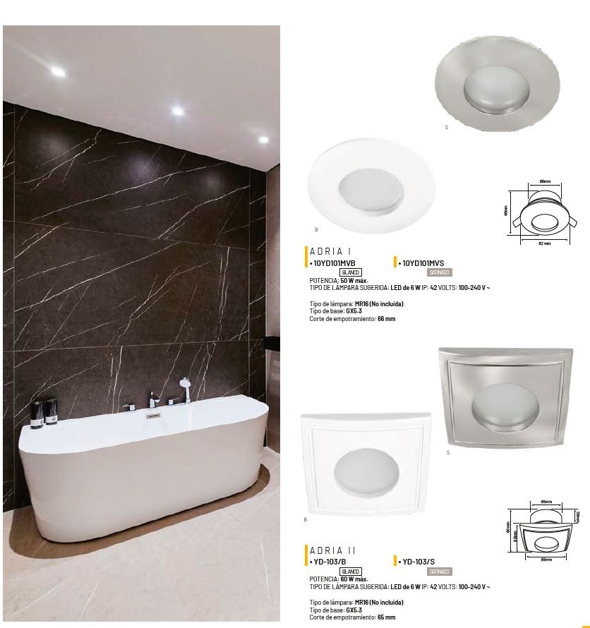 TIPO DE LÁMPARA SUGERIDA: LED de 6 W IP: 42 VOLTS: 100-240 V ~