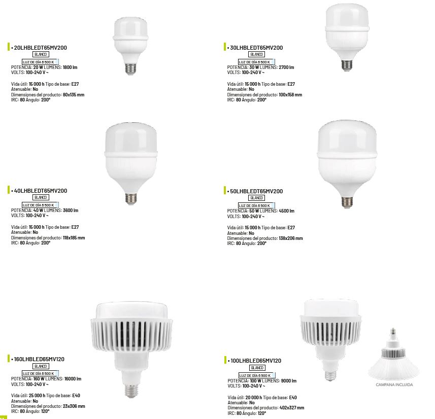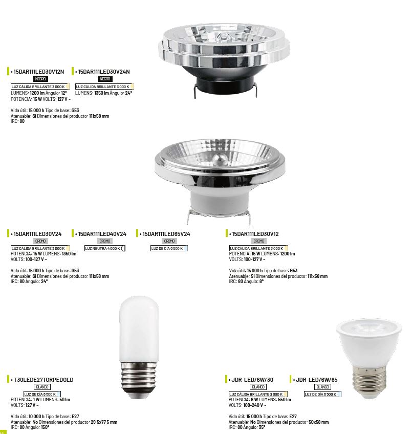 LUZ CÁLIDA BRILLANTE 3 000 K LUZ DE DÍA 6 500 K