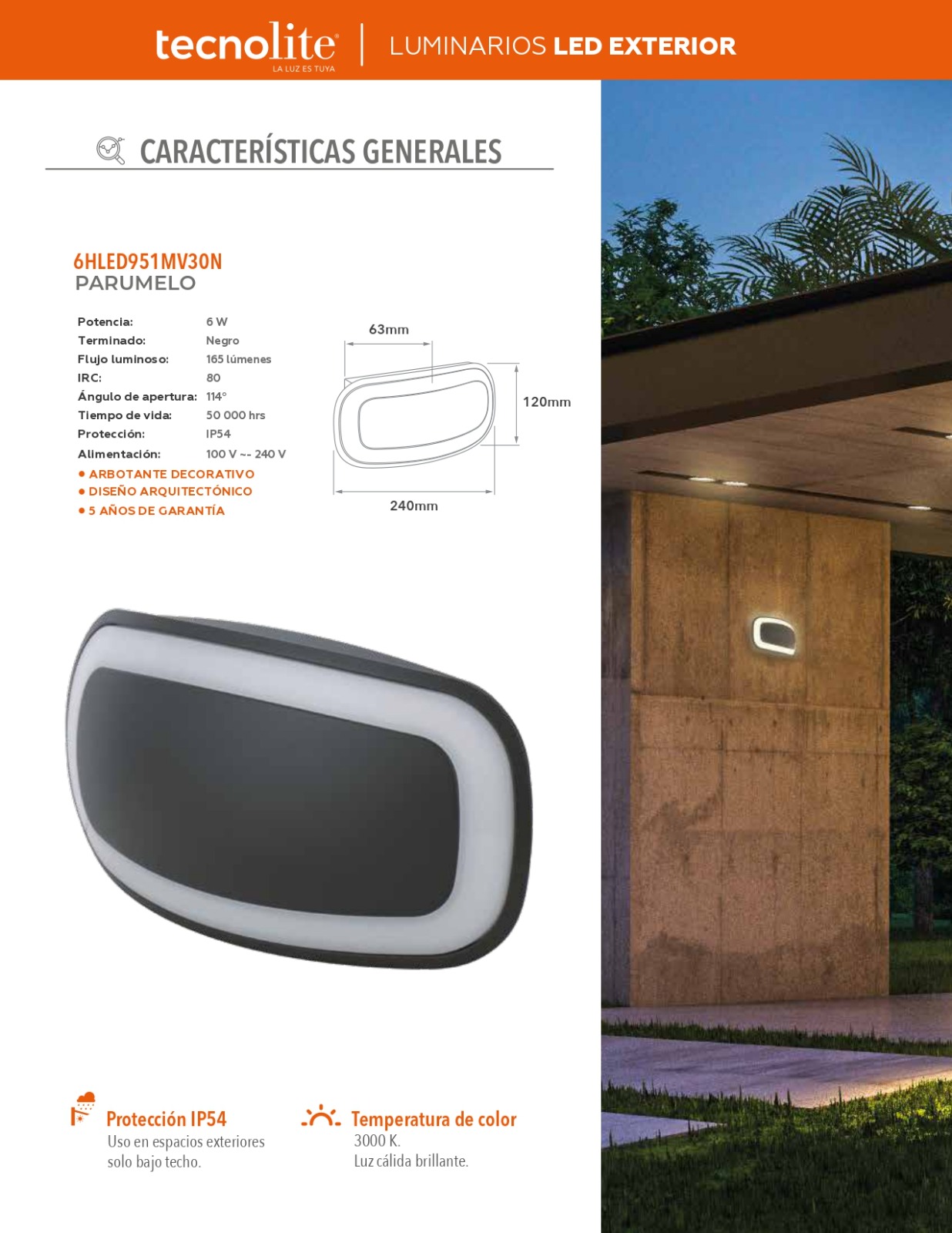 Protección: IP54